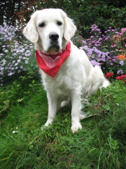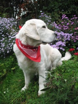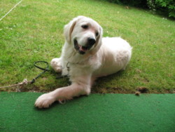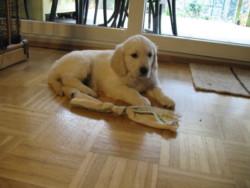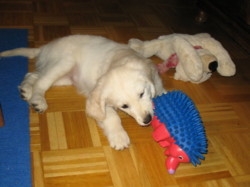 November 2008: Und nun habe ich doch noch mal einen kleinen Welpen zu mir genommen, diesmal aber eine ziemlich helle Retrieverhündin, die mich nicht dazu verführen soll, dass ich sie mit dem geliebten Muck vergleiche. Ihr Name ist